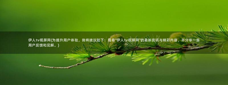 大伊人香蕉网视频:伊人tv视屏网(为提升用户体验,我将建议如下:观看\"伊人tv视屏网\"的最新资讯